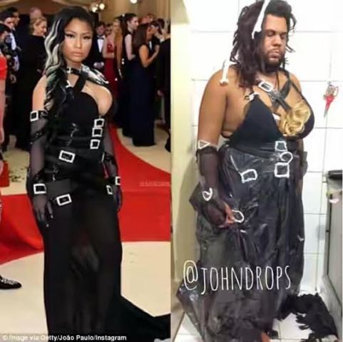 Joao Paulo, a fashion blogger from Salvador, Brazil has shown off his hilarious recreations of looks from the Met Gala red carpet. last night. He created the garments from household items like paper, plastic bin bags and tinfoil. His wacky but inspired posts have garnered the fashion fan and blogger well over 400,000 followers on Instagram. See more photos after the cut...